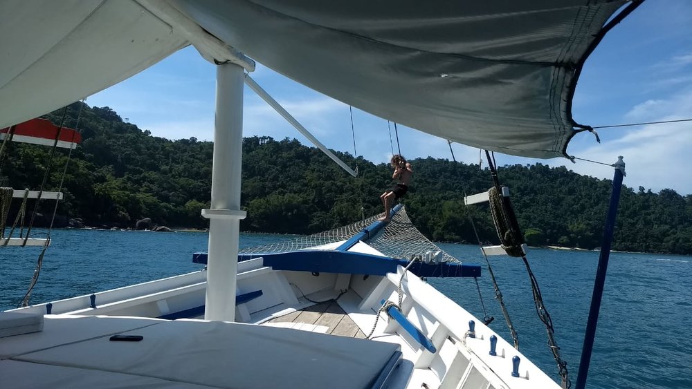 On the morning of the first shoot day, the team sailed on a schooner that set sail from Picinguaba on the way to the beautiful Couves Island (Ilha das Couves). They spent the entire day shooting on the island’s beaches, trails and on the sailing ship itself.